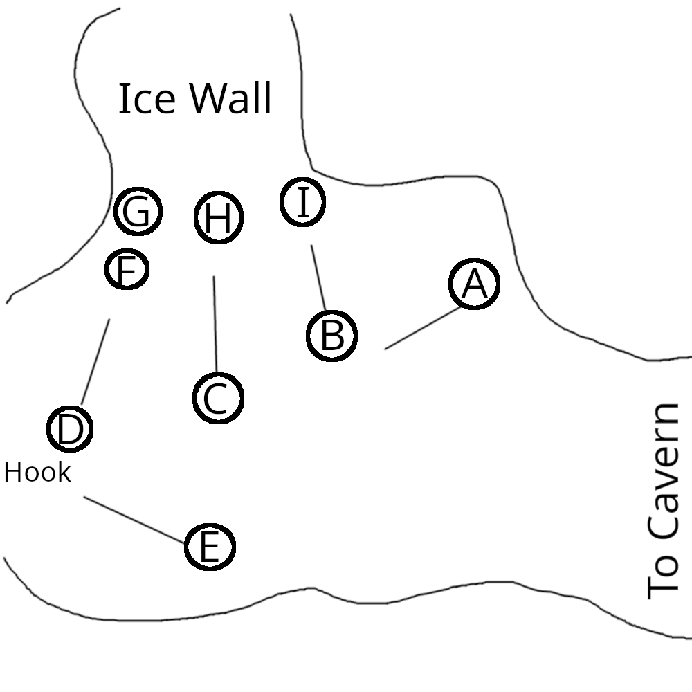 First things first, approach the far left statue just in front of the ice wall (labeled as G in the diagram). This set of armor is missing a helmet, so go ahead and use the Helmet on it to complete the armor set. Not that it looks like the other armor sets, the ice demon will be willing to move. The basic conceit here is that the armored statues are mounted onto tracks, and you can slide them back and forth along the tracks. The goal is to get the three ice demons to hop to different statues and get them as far away from the ice wall as possible. Let's start simple: