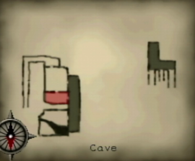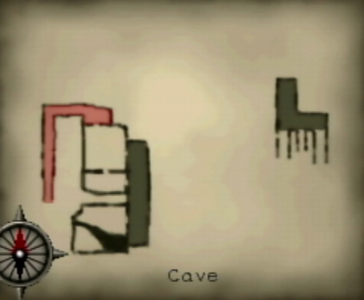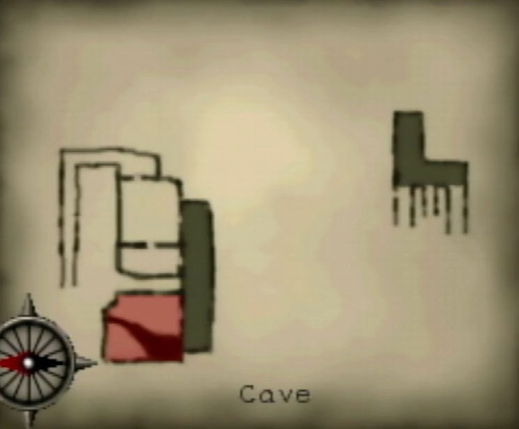 You'll enter this section of the cave and be on a small chunk of land surrounded by very deep water. Turn to the right and look down. At the edge of the dry land you should be able to spot a parchment. Move toward it and you'll be jumpscared by a ghost on the other side of the water. You can't understand each other, so he'll give up and fade away. Turn your attention back to the parchment and pick it up to receive a Map! Now head back to the Drain area.